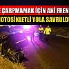 Kediye çarpmamak için ani fren yapan motosikletli yola savruldu