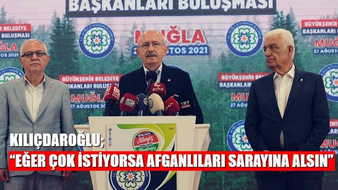 CHP Genel Başkanı Kemal Kılıçdaroğlu, Muğla'da yangın bölgelerini ziyareti sonrası 11 Büyükşehir Belediye Başkanı ile Türkan Saylan Çağdaş Merkezi'nde toplantı yaptı. Kılıçdaroğlu toplantı sonrasında, yangından zarar gören vatandaşların ihtiyaçlarının karşılanacağını, Türk Hava Kurumu'nun yeniden ayağa kaldırılması gerektiğini ve Türkiye'ye gelen Afgan sığınmacılara ilişkin basın açıklaması yaptı.