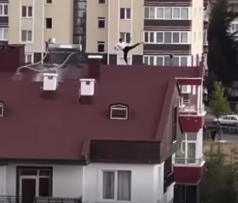 10 katlı bir apartmanın çatısına çıkan genç yaptığı hareketlerle yürekleri ağıza getirdi. Kimliği öğrenilemeyen genç, çatıya çıkarak spor hareketleri yapmaya başlayınca çevredeki vatandaşlar da şaşkınlık içinde gencin hareketlerini cep telefonu ile kaydetti.