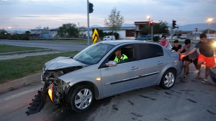 Kavşakta kırmızı ışık ihlali sonucucu iki otomobilin çarpışmasıyla yaşanan trafik kazasında 3 kişi yaralandı.