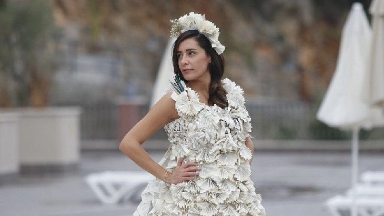Fethiye'de 'Çocuklar Gelinlik Giymesin, Okula Gitsin' projesi kapsamında kitap sayfalarından oluşan gelinlik tasarlandı.