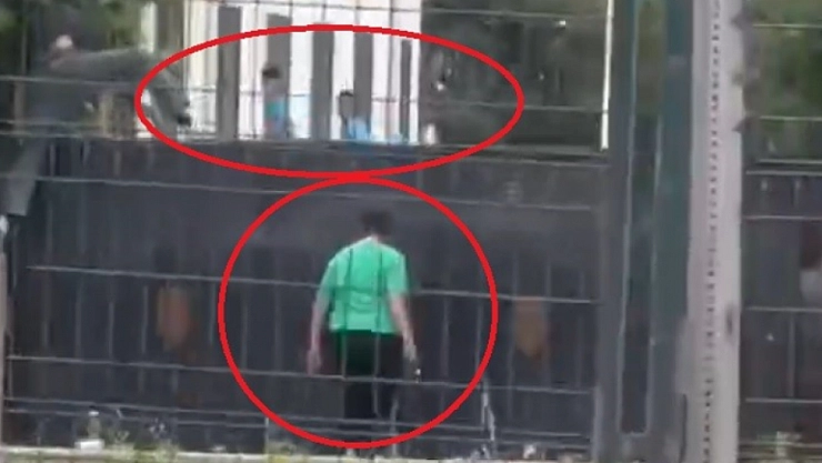 Görüntülerde okulun bahçe kapısının kapalı olduğunu gören kız, kapıyı tekmeliyor. O sırada içerideki öğrenciler sınıfa doğru koşarken, sağa sola bağıran kız ardından bölgeden ayrılıyor.