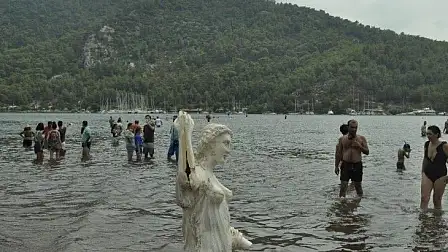 Marmaris’e 35 kilometre mesafedeki Kızkumu plajına gelen turistler bir dönem plajda bulunan işletmecinin getirdiği sembolik heykelin yanında hatıra fotoğrafı çektirip, denizin üzerinde yürümenin keyfini çıkardı. Hava sıcaklığı 30-33 derece ile arasında değişirken denize girenlerin de olduğu plaja gelen yabancı turistler Kızkumu’nun çok güzel bir yer olduğunu, burada olmaktan memnuniyet duyduklarını dile getirdiler.
