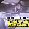 Kontrolden çıkan araç, doğranmış demirlere çarparak durabildi