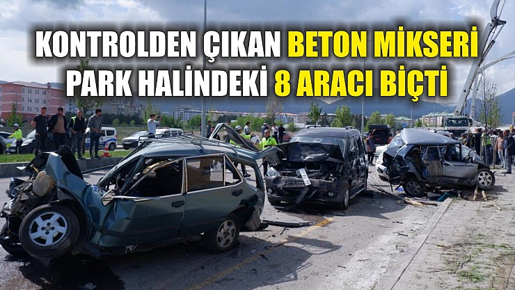 Beton mikseri şoförünün rahatsızlanması sonucu kontrolden çıkan araç park halindeki 8 araca çarptı, kazada yaralanan olmazken maddi hasar büyük.