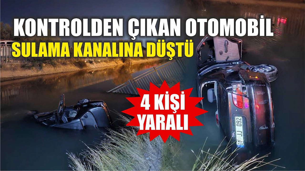 Kontrolden çıkan Fiat marka otomobil sulama kanalına düştü. Kazada yaralanan 4 kişi hastanelere kaldırıldı.