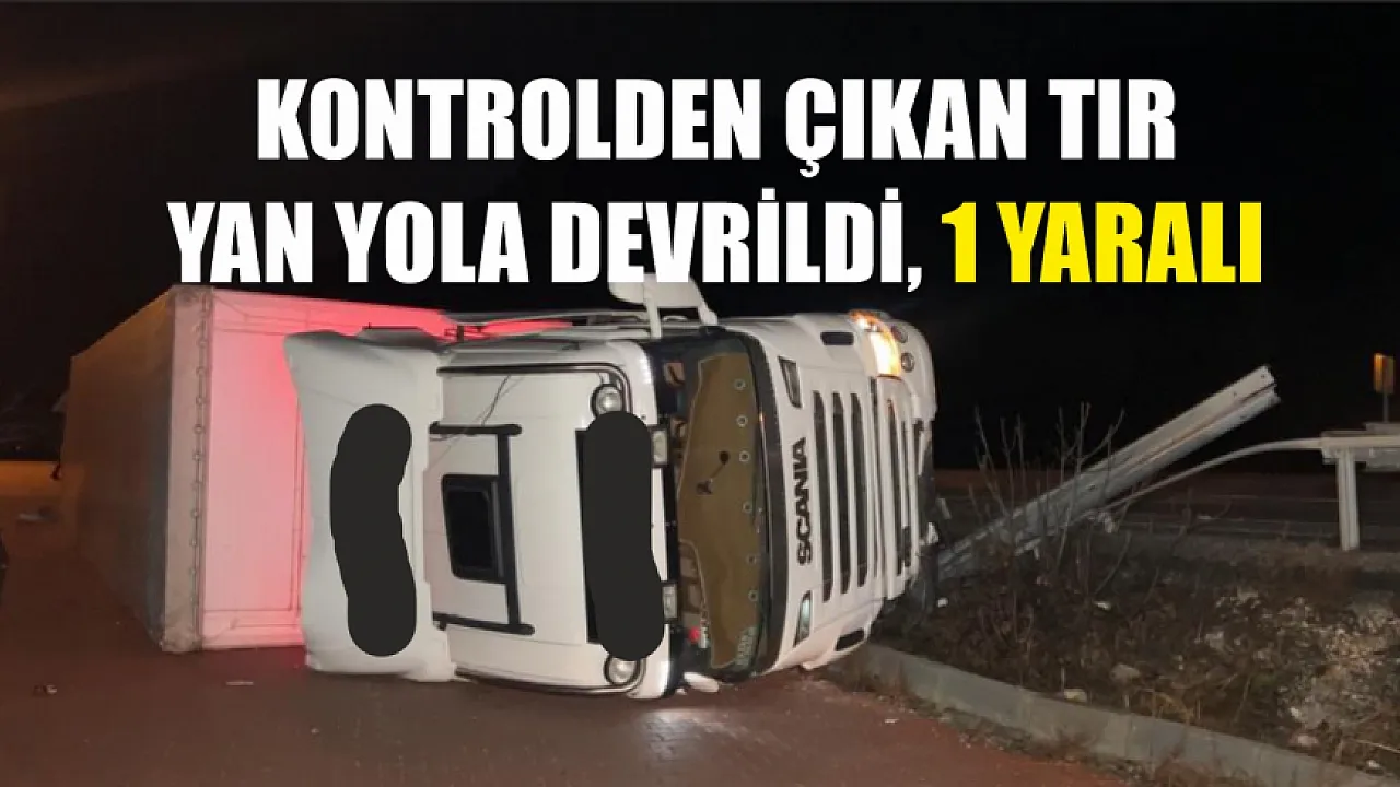 Seyir halindeki tırın kontrolden çıkarak yan yola devrilmesi sonucu 1 kişi yaralandı.