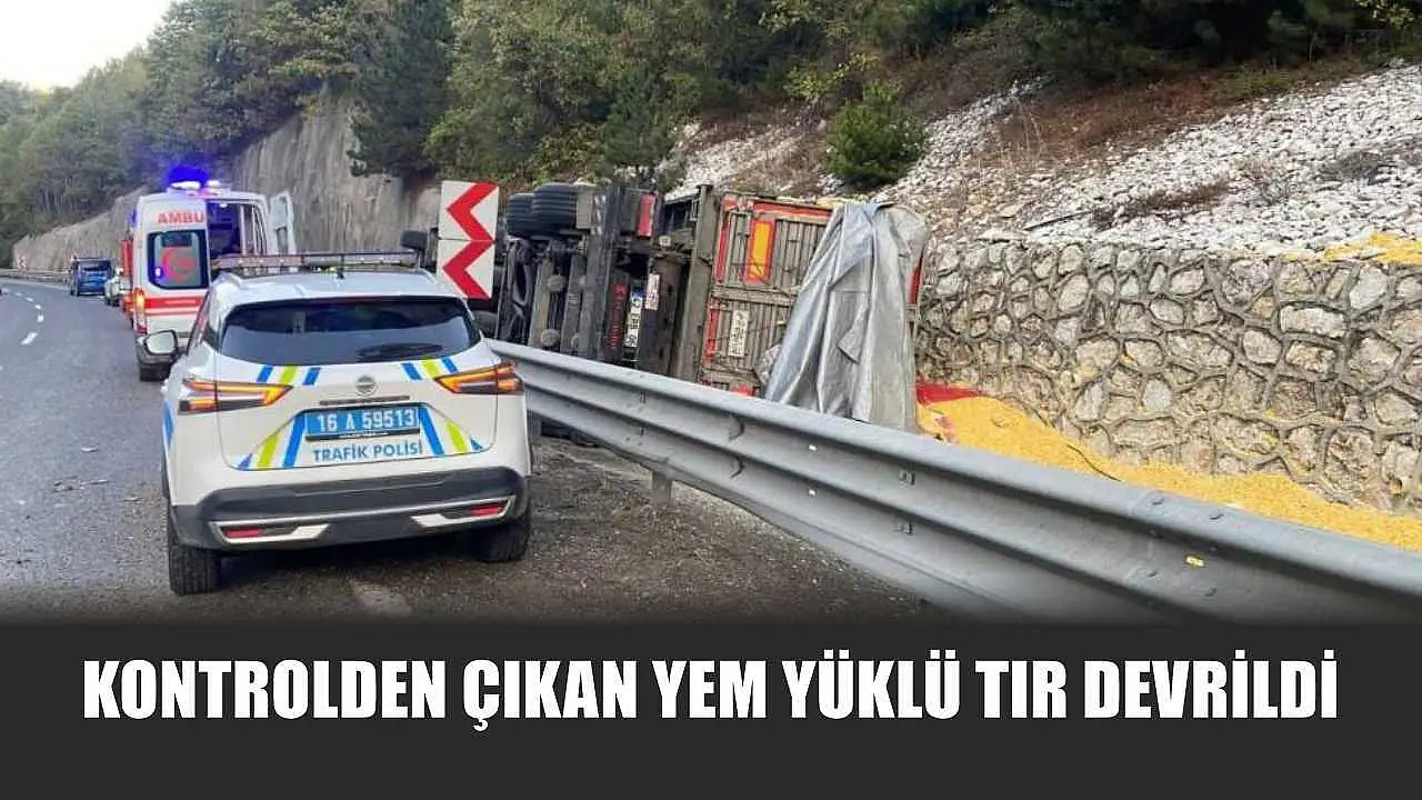 Bursa'nın İnegöl ilçesinde kontrolden çıkan yem yüklü TIR devrildi, sürücü ve eşi yaralandı.