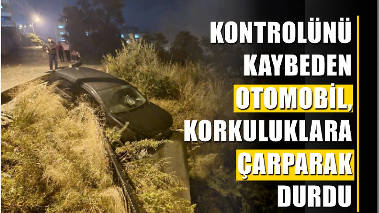Kontrolünü kaybeden otomobil, korkuluklara çarparak durdu