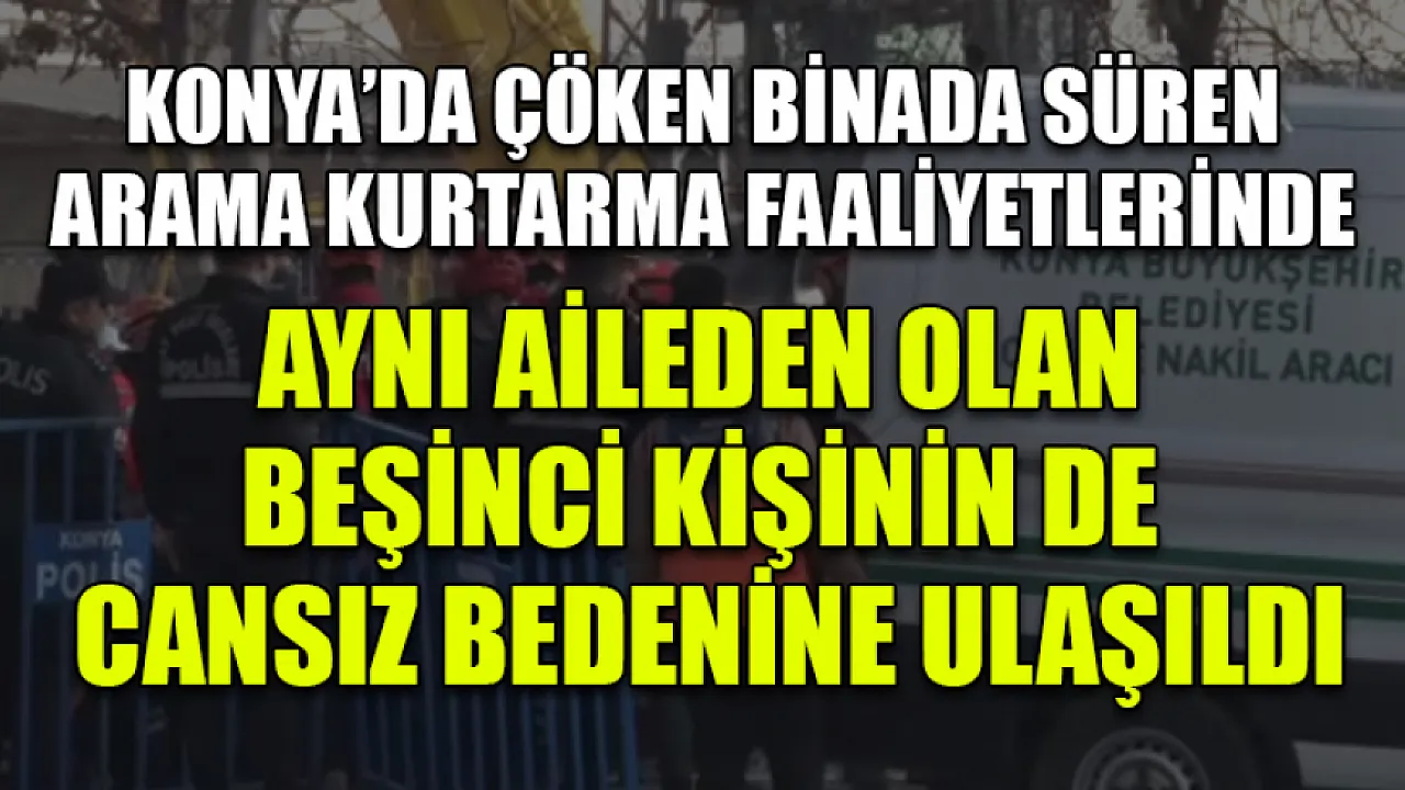 - Konya'da çöken binada süren arama kurtarma faaliyetlerinde aynı aileden olan beşinci kişinin de cansız bedenine ulaşıldı