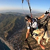Fethiye'de gerçekleştirilen 23. Uluslararası Hava Oyunları Festivali kapsamında Fethiye'ye gelen pilot Yasin Oflaz, 'Badem' isimli köpeğiyle Babadağ'ın 1700 metre yüksekliğindeki pistinden yamaç paraşütü atlayışı gerçekleştirdi.