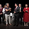 Gözüdeli, sahnede Bodrum Belediye Başkanı Ahmet Aras, Ayhan Ongun ve Tarık Pabuççuoğlu ile birlikte izleyenleri selamlarken Başkan Aras, oyuncuları göstermiş oldukları performanstan dolayı tebrik etti.