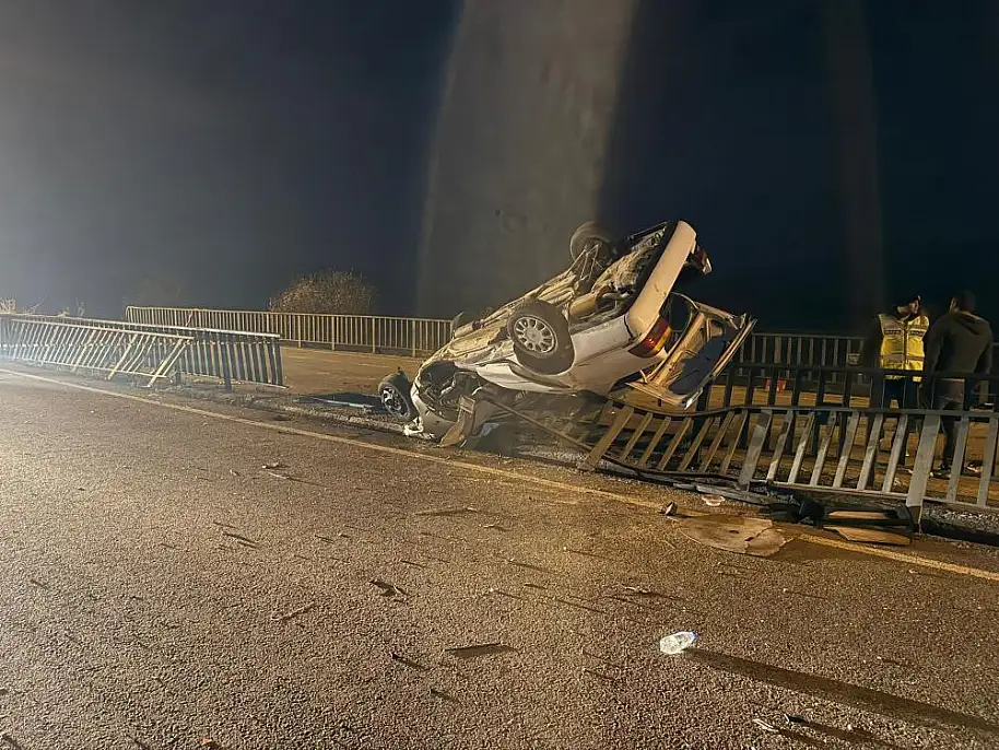 Köprü demirlerine çarpan araç hurdaya döndü: 1 ölü, 3 yaralı