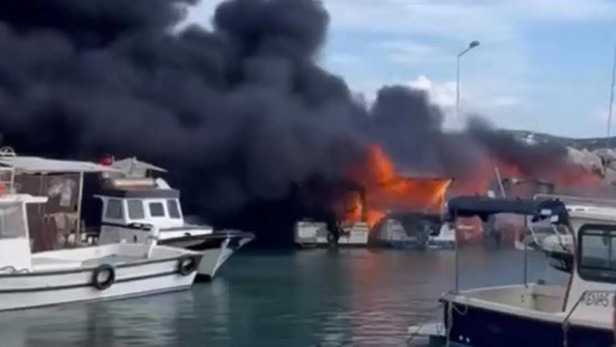 İzmir'in turistik ilçesi Çeşme'de, Ilıca Yıldızburnu Plajı'nda bir teknede çıkan yangın kısa sürede diğer teknelere de sıçradı. Bölgeyi kaplayan yoğun duman paniğe neden olurken yangına itfaiye ekipleri sevk edildi.