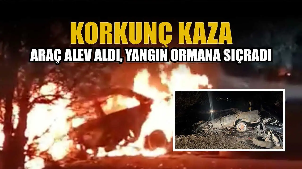 Korkunç kaza: Araç alev aldı, yangın ormana sıçradı