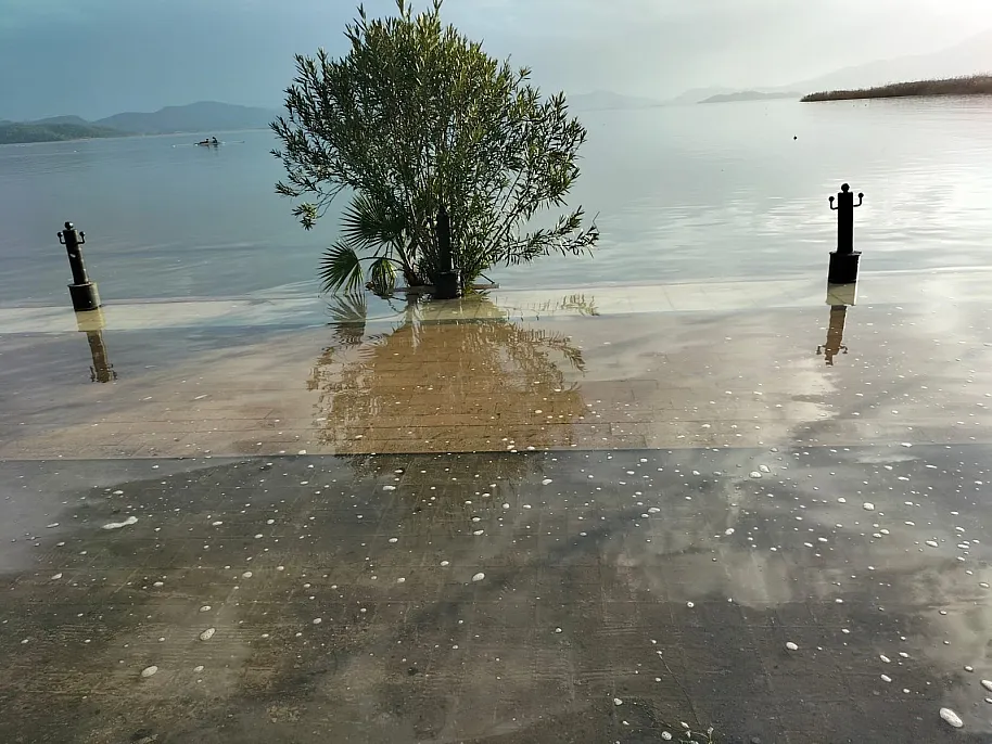 Köyceğiz Gölü taştı, Atatürk Kordonu sular altında kaldı