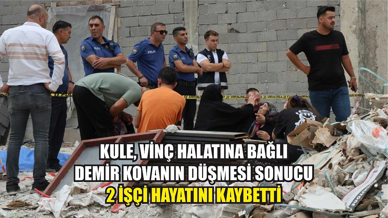 Bir inşaatta kule vinç halatına bağlı demir kovanın düşmesi sonucu 2 işçi hayatını kaybetti. İşçilerin yakınları olay yerinde feryat edip sinir krizi geçirdi.
