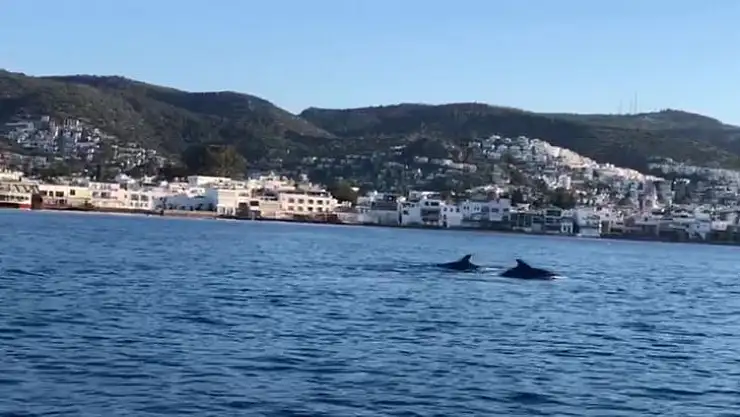 Sabah saatlerinde Bodrum Kalesi açıklarında kürek çeken Bodrum Myndos Amatör Sporcular Kulübü Derneği (BOMASK) sporcuları, güzel bir sürprizle karşılaştı. Sporcular, bölgeden geçtiği sırada onlara 4 adet yunus eşlik etti. Renkli görüntülerin ortaya çıktığı bu anlar, kürekçilere eşlik eden lastik bottakiler tarafından görüntülendi. Bir süre bölgede vakit geçiren 4 yunus, daha sonra gözden kayboldu.