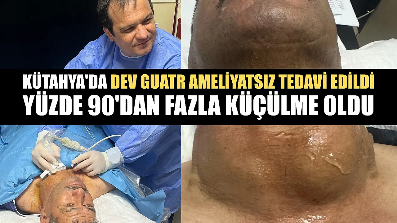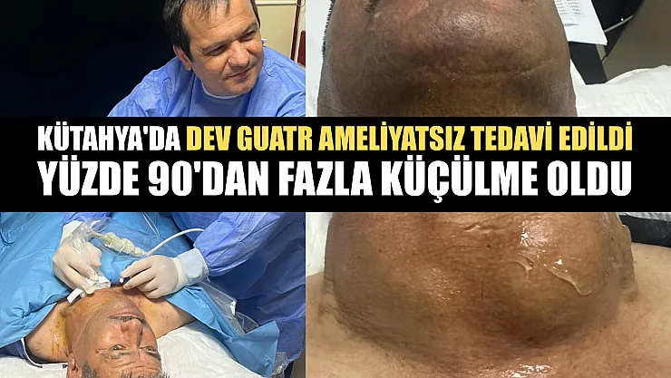 Kütahya Evliya Çelebi Eğitim Araştırma Hastanesi Girişimsel Radyoloji Biriminde olağanüstü büyüklüğe ulaşan guatr, mikrodalga ablasyon yöntemiyle tedavi edilerek yüzde 90'dan fazla küçülme gerçekleştirilerek büyük bir başarıya imza atıldı.