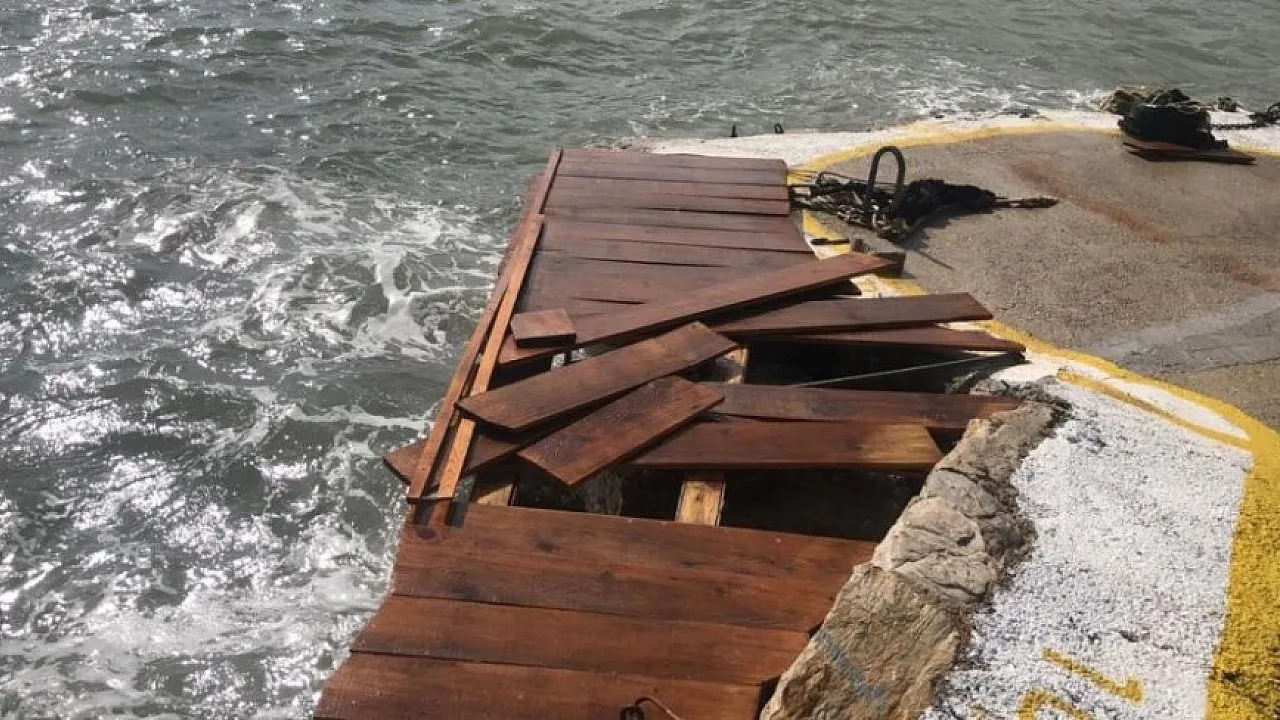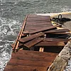 Öğle saatlerinde etkili olan lodos hayatı olumsuz etkilerken, oluşan dalgalara dayanamayan tahta iskele parçalandı.