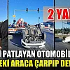Lastiği patlayan otomobil önündeki araca çarpıp devrildi: 2 yaralı