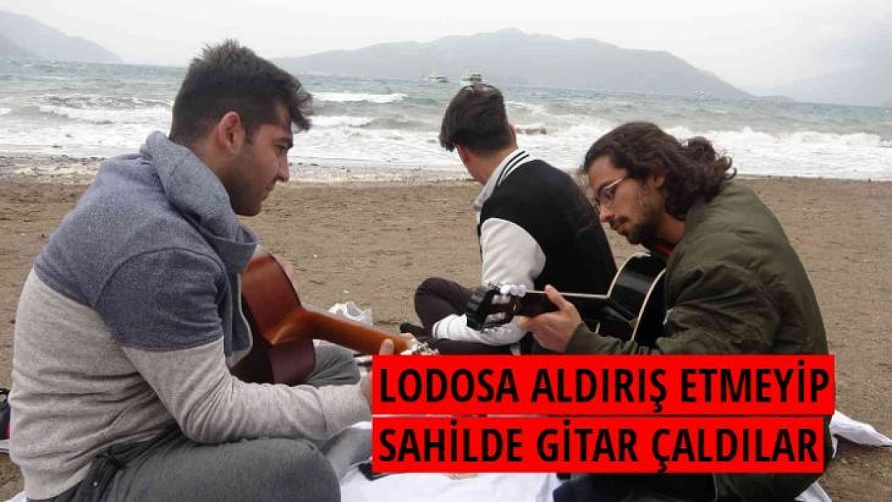 Lodosa aldırış etmeyip sahilde gitar çaldılar