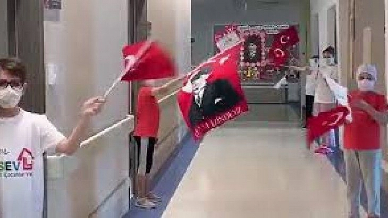 Lösemili Çocuklar Vakfı (LÖSEV) LÖSANTE hastanesinde kalan lösemili çocuklar 23 Nisan Ulusal Egemenlik ve Çocuk Bayramı’nı hastane koridorunda kutladı. Odalarının kapısından Türk Bayrağı sallayan çocukların görüntülerini LÖSEV Kurucu Başkanı Dr. Üstün Ezer sosyal medya hesabında paylaştı. Video binlerce beğeni aldı.