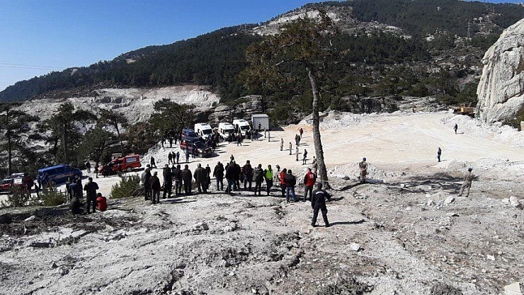 Maden ocağında bugün patlatma olmadığı belirtilirken, önceden yapılan patlatma alanındaki Albit madenlerinin (kaya bloklarının) sahadan kaldırılması esnasında kaya bloklarının yerinden oynaması sonucu sahada çalışmakta olan ekskavator operatörleri Engin Tutuk, Servet Çapacıoğlu ve kamyon şoförleri Şükrü Otalak ile Tayfun Akıncı’nın göçük altında kaldığı öğrenildi.