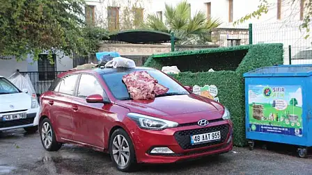 Muğla'nın Bodrum ilçesinde çöp konteynerlerinin önüne park eden ve saatlerce kaldırılmayan otomobilin üzerine çöplerin konulması ilginç görüntüler oluşturdu.