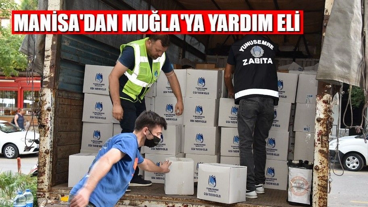 Manisa'da, Yunusemre, Şehzadeler, Köprübaşı, Soma ve Gölmarmara belediyelerinin ortaklaşa topladığı malzemelerin bulunduğu yardım tırı Yunusemre Belediyesi önünden hareket ederek yangınlarla boğuşan Muğla'ya doğru hareket etti.