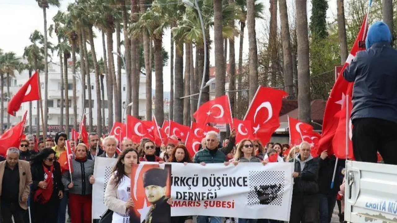 Sadece Türk Bayrakları ile gerçekleştirilen ’Şehitlere saygı, Kahraman ordumuza destek’ yürüyüşü Atatürk Caddesi üzerinde Ketenci Kavşağı’nda başladı. Bölgede toplanan vatandaşlar ellerindeki Türk Bayrakları ile yürüyüp ’Şehitler ölmez, vatan bölünmez, Mustafa Kemal’in askerleriyiz’ sloganları ile yaklaşık 4 kilometre yürüdükten sonra Atatürk Anıtı önünde toplandılar. Marmaris Belediyesi ve ilçedeki sivil toplum kuruluşlarının destek verdiği yürüyüş sonunda katılımcılar saygı duruşunda bulunup İstiklal Marşımızı okuduktan sonra dağıldılar.
