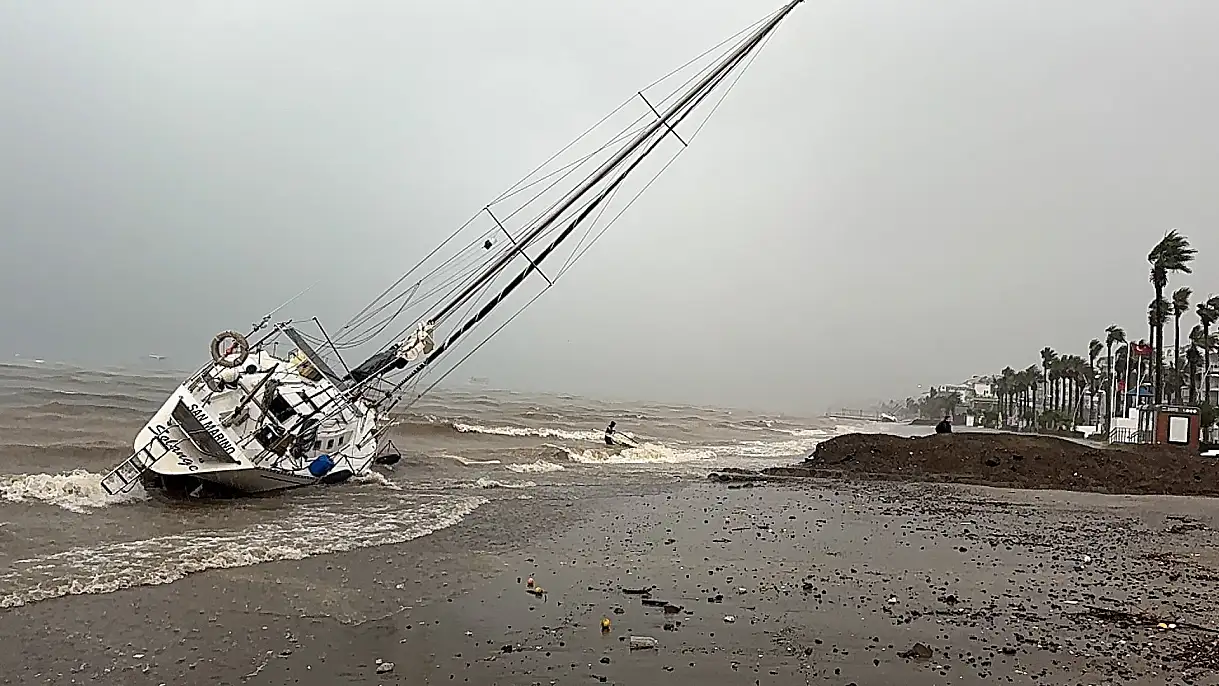Marmaris'te fırtınada karaya vuran yelkenliler kaldırılıyor