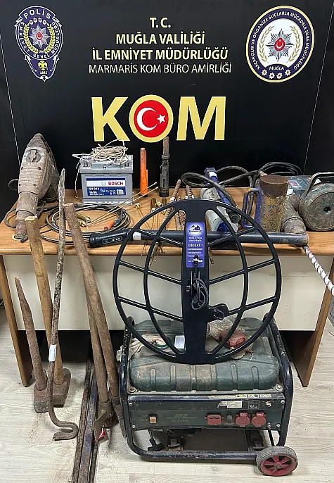 Muğla'nın Marmaris ilçesinde kaçak kazı yaptığı belirlenen üç kişi, polis ekipleri tarafından suçüstü yakalandı. Şüphelilerin aracında ve kaldıkları apartta yapılan aramalarda patlayıcı düzenekler, el dedektörleri ve kazı malzemeleri ele geçirildi.