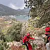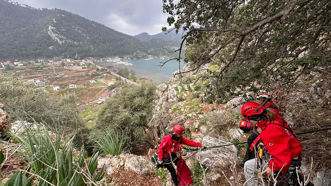 Muğla'nın Marmaris ilçesinde, kayalıklarda mahsur kalan köpek, keçi ve oğlak, Arama Kurtarma Derneği (AKUT) ekibince kurtarılarak güvenli alana tahliye edildi.
