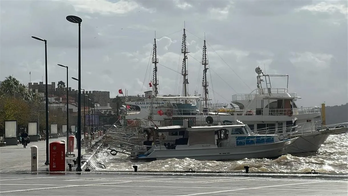 Muğla'nın Marmaris ilçesinde dün gece başlayan sağanak yağış ve şiddetli lodos, ilçede etkili olmaya devam ediyor. Yağışlar ve lodos etkisiyle deniz ve derelerin rengi kahverengine dönerken, ilçedeki tüm ekipler teyakkuz halinde, her mahallede ve belirli noktalarda nöbet tutuyor.
