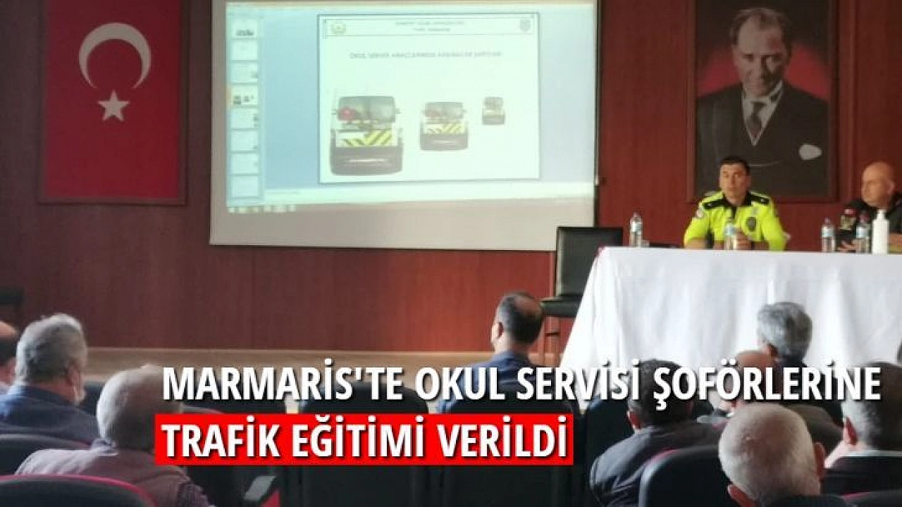 Muğla'nın Marmaris ilçesinde okul servisi şoförlerine trafik eğitimi verildi. Marmaris İlçe Emniyet Müdürlüğü'ne bağlı Trafik Tescil Şube, İlçe Jandarma Komutanlığı'na bağlı Jandarma Trafik ve İlçe Milli Eğitim Müdürlüğü'nden görevliler güvenli trafik sürüşü, kazaları önleme çalışmaları kapsamında 66 okul servisi şoförüne eğitim verdi.