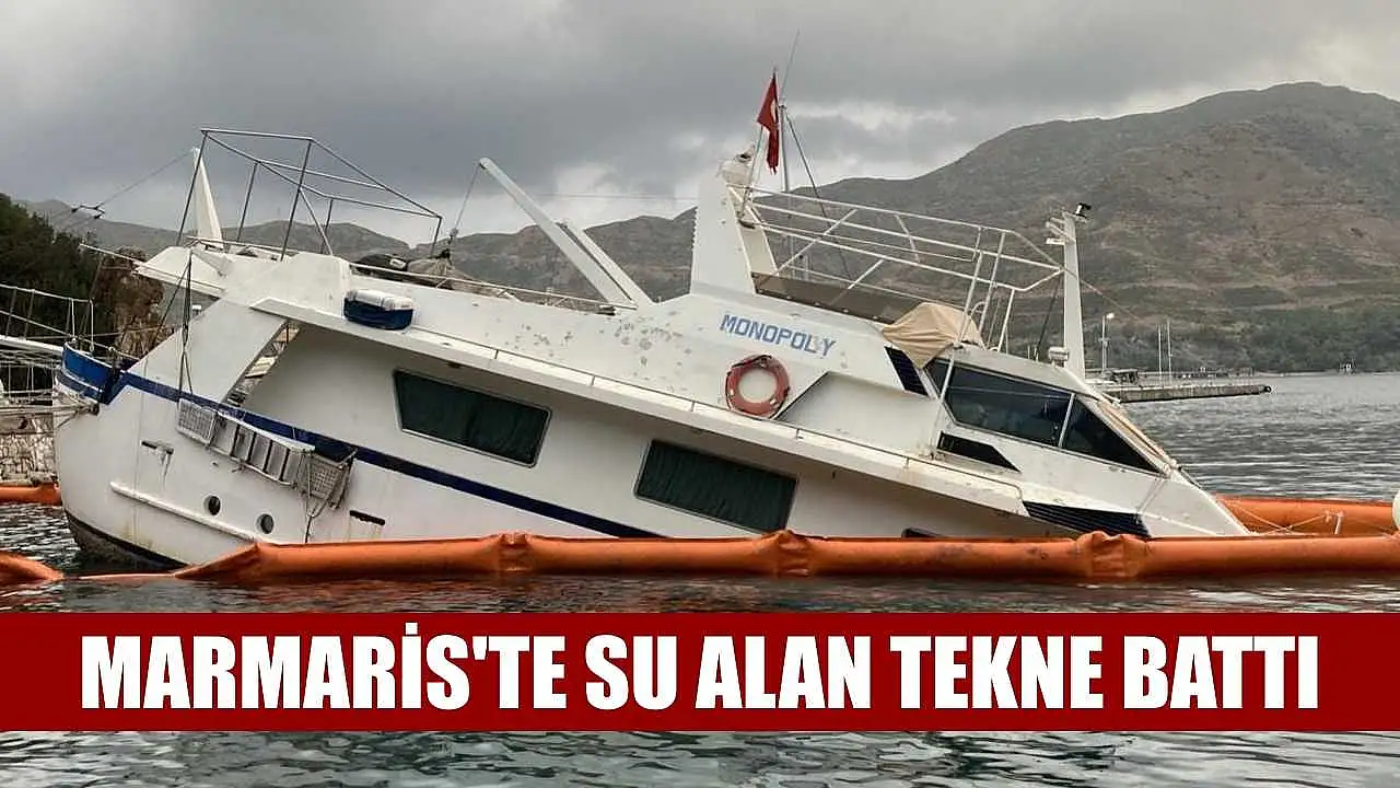 Muğla'nın Marmaris ilçesinde su alıp yarısı batan tekneden yakıt sızıntısı nedeniyle önlem alındı.