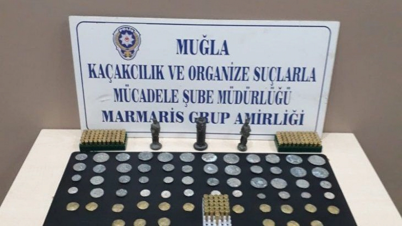 Muğla'nın Marmaris ilçesinde polisin düzenlediği operasyonda Roma dönemine ait 65 adet sikke ele geçirildi.