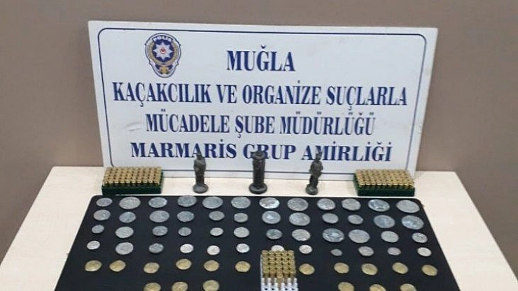 Edinilen bilgiye göre, Marmaris İlçe Emniyet Müdürlüğü Kaçakçılık ve Organize Suçlarla Mücadele(KOM) Grup Amirliği ekipleri, aldıkları bir istihbarat ile operasyon düzenledi. Armutalan Mahallesi’nde bir eve düzenlenen baskında yapılan aramalarda buzdolabına yerleştirilmiş salça kavanozları içinde, elbise dolaplarının gizli çekmecelerinde ve koltukların altlarına yapılan gizli ceplerde saklanmış, Helenistik ve erken Roma dönemine ait 65 adet sikke, 3 adet heykelcik ve 200 tane 9mm tabanca mermisi ele geçirildi. Kafeterya işletmecisi olduğu öğrenilen şahıs evde bulunan kaçak tarihi eserlerle birlikte KOM Grup Amirliği’ne getirildi. Ele geçirilen tarihi eserler ise Marmaris Müze Müdürlüğü yetkililerine teslim edildi. yapılan operasyonda yakalanan O.Ç gözaltına alındı.
