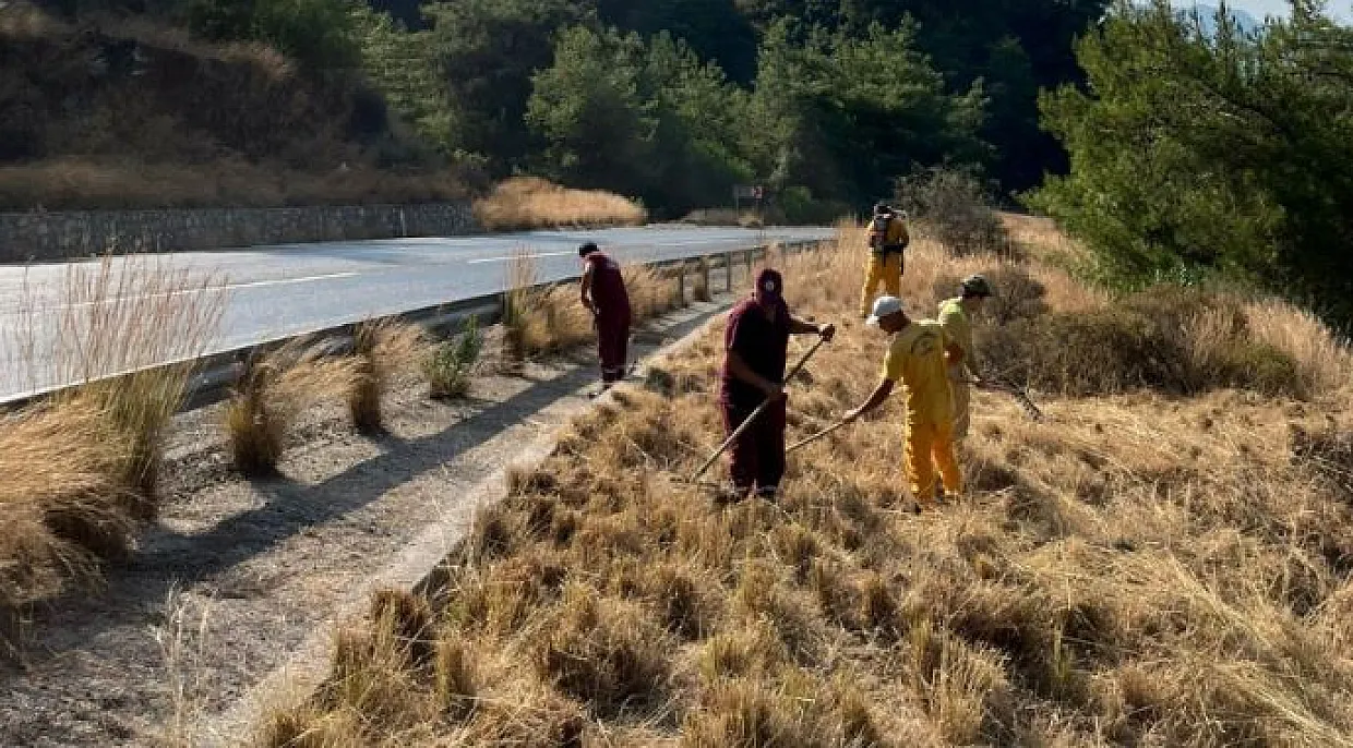 Marmaris'te yol kenarlarında yangınlara önlemler dahilinde ot temizliği yapıldı
