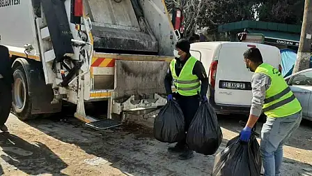 Marmaris Belediyesi Temizlik İşleri Müdürlüğü’nden 5 kişilik ekip Gaziantep’te temizlik çalışmalarına devam ediyor. Nurdağı’nda özellikle çadırların kurulduğu alanları ve halkın yoğun olarak bulunduğu yerlerde temizlik çalışması gerçekleştiren ekipler sokakları süpürerek dolan konteynerleri yine Marmaris’ten giden çöp kamyonuna aktarıyor.