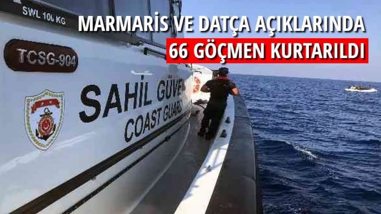 Muğla'nın Marmaris ve Datça ilçesi açıklarında lastik bot ve can salları içinde Türk karasularına geri itilen 66 düzensiz göçmen Türk Sahil Güvenlik ekipleri tarafından kurtarıldı.
