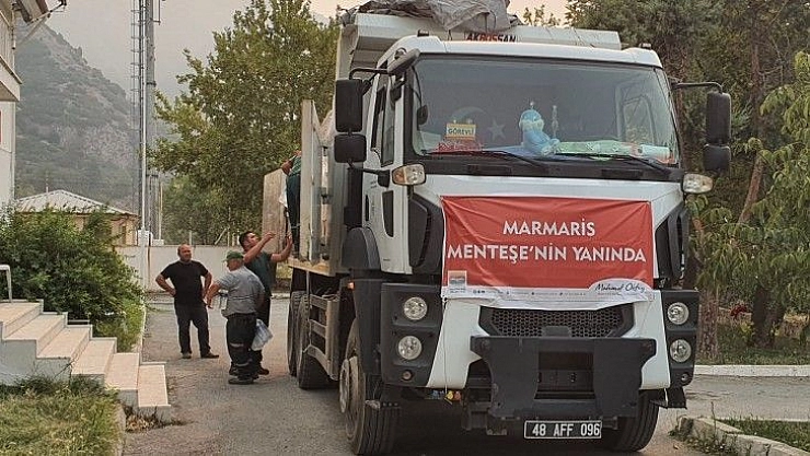 Sekiz gün boyunca yangınla mücadele eden Marmaris, 'dayanışma yaşatır' dedi ve yangının meydana geldiği diğer ilçelerle sel yaşanan Van'a yardım elini uzattı.