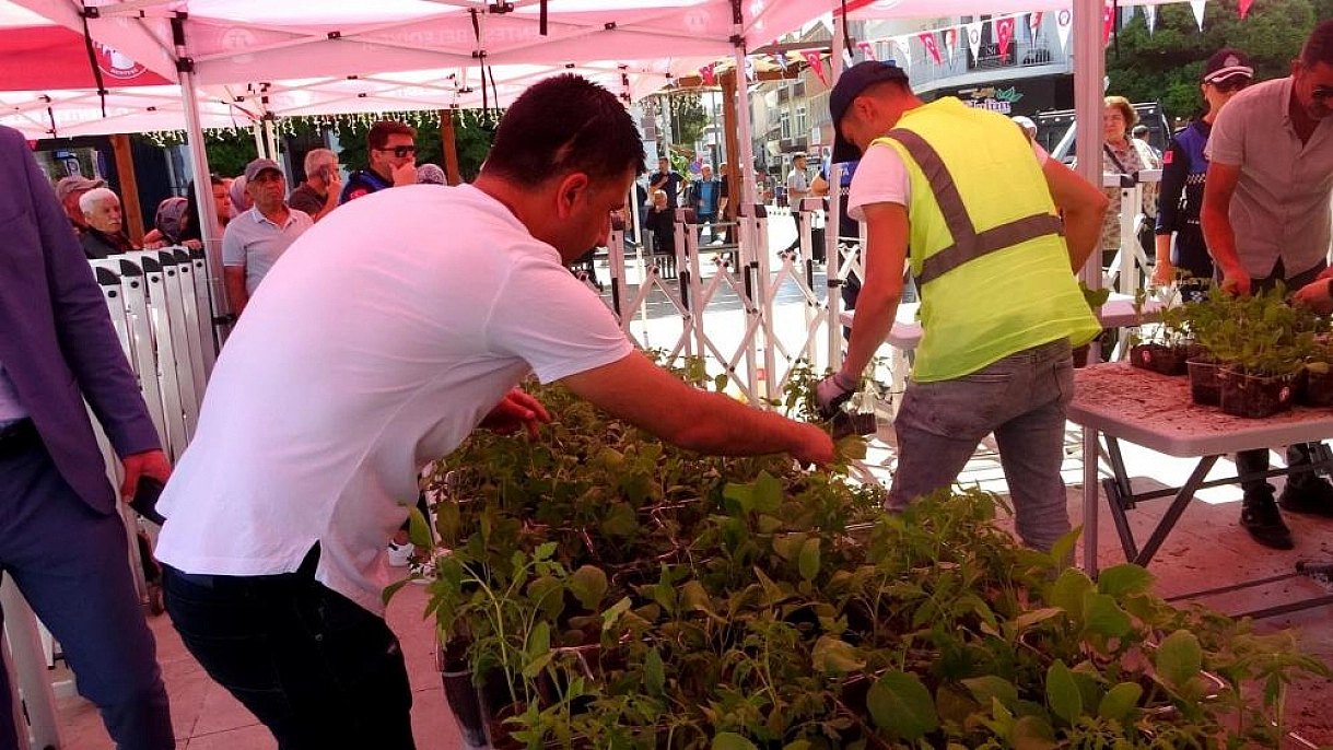 Menteşe Belediyesi, yerli üretimi ve ata tohumlarını teşvik etmek amacıyla Kurşunlu Meydanı'nda vatandaşlara domates, biber ve patlıcan fideleri dağıttı.