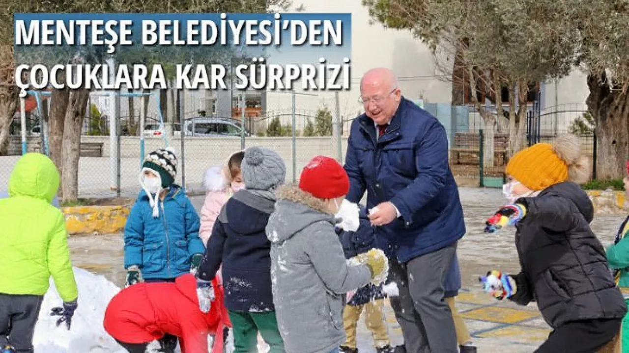 Menteşe'de yüksek kesimlerde etkili olan karın kent merkezine yağmaması üzerine Menteşe Belediyesi kamyonla kar getirerek çocuklara sürpriz yaptı.