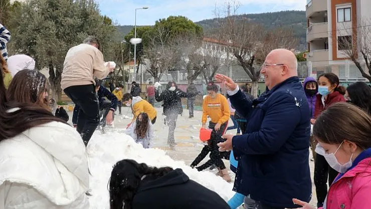 Çocuklarla birlikte kartopu oynayan Menteşe Belediye Başkanı Bahattin Gümüş, “Yılanlının yüksek kesimlerinde etkili olan kar kent merkezine yağmadı. Bu durum en çok çocukları üzüyor. Onlar karla oynamayı çok seviyor. Biz de onlara sürpriz yapmak istedik. Yılanlı’nın yüksek kesimlerine yağan kardan bir kamyon getirerek okulun bahçesine döktük. Onları mutluluğu, yüzlerindeki gülümseme bizlere yeter de artar bile.” dedi.