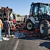 Menteşe'de domates yüklü kamyon devrildi