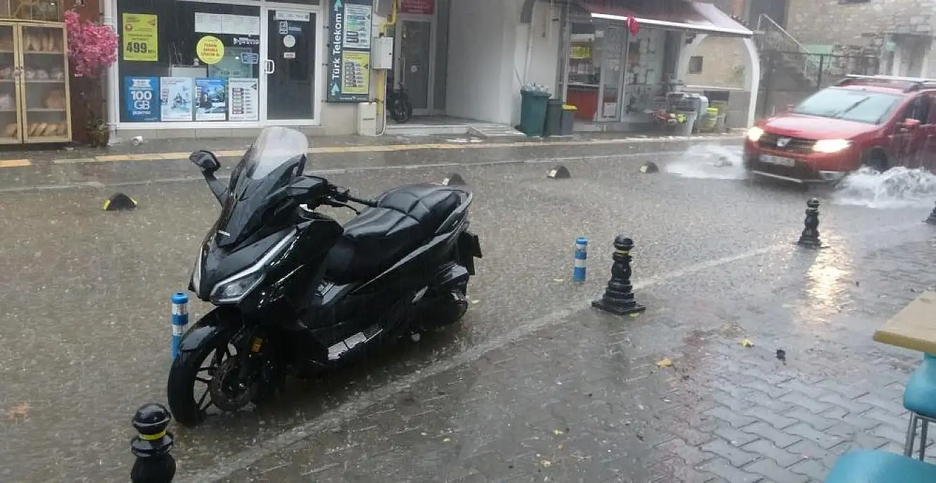 Muğla'nın merkez ilçesi Menteşe, dün akşam saatlerinden itibaren sağanak ve dolu yağışının etkisi altına girdi.