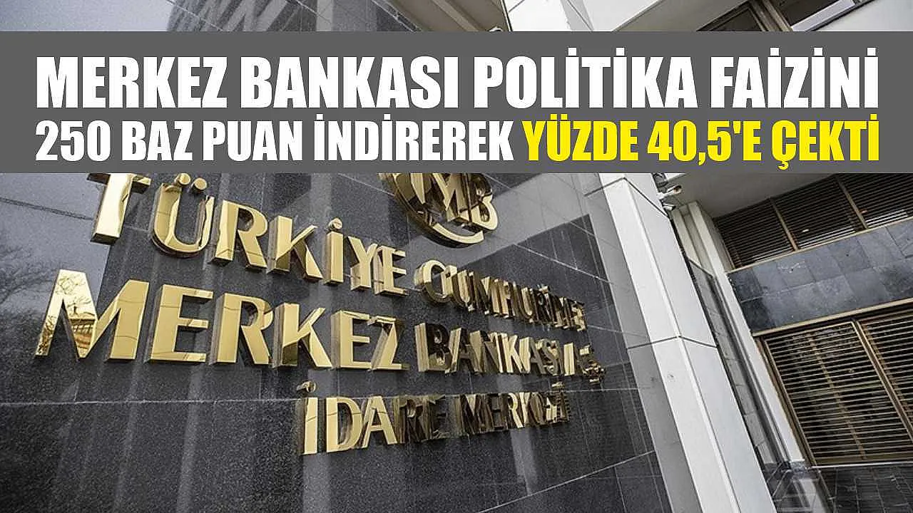 Türkiye Cumhuriyet Merkez Bankası Para Politikası Kurulu, politika faizi olan bir hafta vadeli repo ihale faiz oranını 250 baz puan indirerek yüzde 40,5'e çekti.