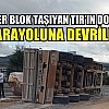 Mermer blok taşıyan Tır'ın dorsesi karayoluna devrildi
